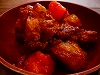 鶏肉とジャガイモを揚げ、すごくカリッとしているところに、甘酢、トマトも入っている。鶏肉はやわらかくしっとり。