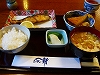 席に座って、「タイ!!」と言ったら「”カイ”セン!」といわれ、「ツボダイの照り焼き」とフルに言う。「ごはん少な目!」